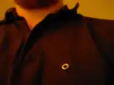 A Gaeilgeoir (an Irish speaker) wearing a Fáinne