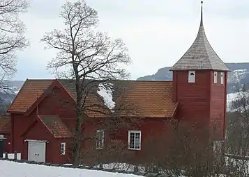 Fåberg Church (Norwegian: Fåberg kirke) is a parish church of the Church of Norway in Lillehammer Municipality in Innlandet county, Norway. It is located in the village of Fåberg. It is the church for the Fåberg parish which is part of the Sør-Gudbrandsdal prosti (deanery) in the Diocese of Hamar. The red, wooden church was built in a cruciform design in 1727 using plans drawn up by the architect Svend Tråseth. The church seats about 292 people.[1][2]