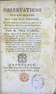 - ↑ "Felix Vicq-d'Azyr Papers 1778-1784". National Library of Medicine.