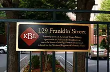 The plaque outside of 129 Franklin Street, identifying it as the site of the F.A. Kennedy Steam Bakery