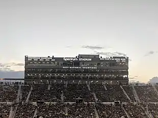 The then-Spectrum Stadium press box with "2017 National Champions" signage