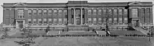 In 1926 the school was expanded for the first time, with a four-story classroom building and gymnasium being added in the style of the original building to its west end.[4] In 1956 a new section containing many new specialty rooms was added which destroyed its original entrance, and in 1957 a five-story classroom wing and a larger gymnasium were added. Also in 1957, an auditorium was added that connected to the Reitz Bowl press box, creating a tunnel (known simply as "the tunnel" by students) where concessions are sold during home athletic events.[4] In 1973 a greenhouse was added, as well as an electric scoreboard for the Reitz Bowl that was donated by the West Side Nut Club.[5] In 1977 an automobile driving range was added off-campus at the nearby Barker Avenue Sports Complex to accommodate the Indiana Driver's Education Department; the driving range is now the practice lot for the school's marching band. In 1988 a fieldhouse was added along with weight training facilities.[5] In 1998 another building (the "new building" as it is called by the students) was added to the school; it is connected to the old building via an elevated passageway known as "the link" that now serves as the school's main entrance. At the same time, the school received a $26 million renovation.[4] In 2009 the football field was replaced with AstroTurf and dedicated the Herman Byers field, Reitz's head football coach from 1942–1962 who accumulated a 189–51–15 record and 6 state championships.[5]