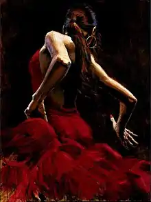 Fabian Perez (Spanish: Fabián Pérez) is a visual artist from Buenos Aires, Argentina, known for his paintings of tango and flamenco dancing and nightclub life, as well as for his acknowledged portraits of world celebrities. Perez' artwork has gained considerable international attention and praise from qualified sources.[1][2][3][4] The artist has proposed "Neo emotionalism" as the name to designate his art style characterized by emotion, mundane passion, dramatic narrative, and a heady atmosphere.[5][6] He was born on November 2, 1967.