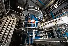 On June 22, 2022, the first experiment at FRIB, which studied the beta decay of calcium-48 fragments that are so unstable that they only exist for mere fractions of a second, concluded successfully.[21] FRIB's first scientific user experiment had participation from Argonne National Laboratory, Brookhaven National Laboratory, Florida State University, FRIB, Lawrence Berkeley National Laboratory, Lawrence Livermore National Laboratory, Louisiana State University, Los Alamos National Laboratory, Mississippi State University, Oak Ridge National Laboratory, and the University of Tennessee. On November 14, 2022, the results of the first experiment were published in Physical Review Letters.[22][23]