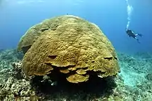 Also known as Big Mama and Fale Bommie,[17] Big Momma is the biggest known coral on Earth.[18] It is located in the Valley of Giants in the National Marine Sanctuary of American Samoa.[19] It is 21-foot (6.4 m) tall, and its circumference is 134 feet (41 m). It is over 500 years old. Its scientific name is Porites lobata.[19]