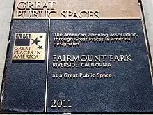 - ↑ "Fairmount Park: Riverside, California". www.planning.org. Retrieved 21 February 2019.