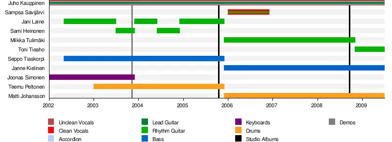 | Past members | Juho Kauppinen Jani Laine Seppo Tiaskorpi Teemu Peltonen Matti Johansson Janne Kielinen Miika Tulimäki Toni Tieaho |