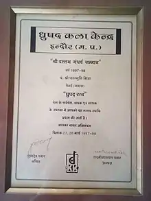 • Dhrupad Ratna by Dhrupad Kala Kendra, Indore on 28 March 1998.