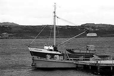 Sailors from the command were tasked with manning the small coastal craft seized from the Falkland Islands Government and Falkland Islands Company. On 1 May 1982, Islas Malvinas GC82, an Argentine Z-28 type naval patrol boat was damaged near the Kidney Island by a Westland Lynx HAS.Mk.2/3 helicopter from HMS Alacrity, the British helicopter (XZ720) was also damaged by fire from the armed coaster Forrest.[6][7] During a mission carried out by Monsunen to resupply the garrison at Port Stanley from Fox Bay, the small Argentine vessel was engaged by British naval and air forces during the Battle of Seal Cove. Although compelled to temporarily abandon the ship when it ran aground, it refloated on the incoming tide and with assistance from the Forest they were able to complete the resupply trip.[8][9] In the closing moments of the war, seamen from the unit were deployed as infantry supporting the Argentine marines and engaged the SBS and SAS during the diversionary raid on Port Stanley Harbour.[10][11]