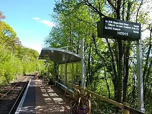 Falls of Cruachan railway station is a railway station located at the foot of Ben Cruachan in Scotland. This station is on the Oban branch of the West Highland Line, originally part of the Callander and Oban Railway. It is sited between Taynuilt and Loch Awe, sited 52 miles 69 chains (85.1 km) from Callander via Glen Ogle.[3] ScotRail manage the station and operate all services.