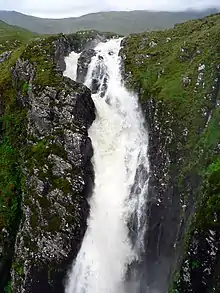 The Falls of Glomach, in Ross-shire, Scotland, is one of the tallest waterfalls in Britain, with a drop of 113 m (370 ft). The falls border Kintail, donated to the National Trust for Scotland in 1944 and subsequently incorporating West Affric in 1993. It is not easily reached on foot, requiring a 20 kilometre trek through remote and wild countryside.[1]