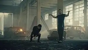The music video depicts Yatra and Martin gently mourn a broken love in an abandoned ruined industrial factory with an old piano and a burning car, fronting a rock band and a group of masked dancers who perform a choreography, writhing across a "wreckage".[9][10][14] Shock.co staff labeled the visual "a sober and dark video in which the two interpreters shine", describing it as "pretty artistic".[17] Vicente called the music video "a video clip of great beauty according to the lyrics" of the song.[26] The video was nominated for Best Male Artist Video at the 2020 Premios Quiero.[57] As of July 2022, the video has received over 100 million views on YouTube.[48] On April 10, 2020, an accompanying lyric video was released on Yatra's YouTube channel.[58]