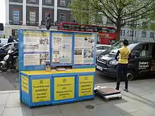 In July 1999, the CCP initiated a campaign to persecute Falun Gong, including through the use of extralegal imprisonment, torture and other coercive measures, and propaganda.[31] Falun Gong communities inside and outside China have adopted a variety of approaches to resist and mitigate the persecution in China. These tactics range from engagement with the media, lobbying of governments and NGOs, public protests and demonstrations, and attempts to seek legal redress. As the persecution in China progressed, overseas Falun Gong efforts increasingly tied their pleas for relief to Western human rights discourse, emphasizing the implications for freedom of speech, assembly, and conscience.