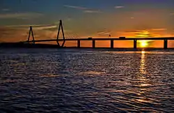 The Farø Bridges (Danish: Farøbroerne, pronounced [ˈfɑːʁœˌpʁoˀɐnə]) are two road bridges that connect the islands of Falster and Zealand in Denmark by way of the small island of Farø which is approximately mid-way across the Storstrømmen sound. A smaller bridge from Farø provides access to Bogø and thence to the island of Møn.