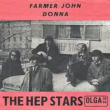 Swedish rock band Hep Stars recorded "Farmer John" as a single in late 1964.[16] The band most likely did not derive their rendition of the song from The Premiers, which, despite being a sizable hit in the US, did not chart in Sweden. They presumably got their inspiration from British beat group the Searchers, who had recorded the track for their debut album Meet The Searchers in 1963.[17] Both covers are extremely similar to each other, with both featuring the drum-roll intro along with the distinct harmonies and vocalizations not found on the Premiers version.[18] Although the rendition heavily relies on the Searchers version of the track, the Hep Stars heard it through a Finnish rock band first before listening to other versions.[19] The Hep Stars version is notably much more quicker and raw than both previous counterparts.[19]
