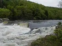 The river has several whitewater sections that are popular for tubing and kayaking. One of these, the colloquial "Upper Farmington" section of the West Branch in New Boston, Massachusetts, is about 7 miles (11 km) long. It is Class 2 through farm and woods scenery to an iron bridge, where kayak and canoe slalom races are held.[17] A second whitewater section is found in Tariffville, Connecticut, consisting of 1.5 miles (2.4 km) of technical Class 2 and Class 3 water with heavy currents.[18] Other whitewater areas include Satan's Kingdom in New Hartford, Connecticut,[19] which is also popular with tubers, and the Crystal Rapids section in Collinsville and Unionville, Connecticut, which offers 4 miles (6.4 km) Class 2 waters.[20]