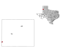 It is located 10 miles (16 km) east of Clovis, New Mexico, 88 miles (142 km) northwest of Lubbock, Texas, and 95 mi (152.888 km) southwest of Amarillo, Texas. It lies at the junction of two branches of the BNSF Railway from Belen. One branch goes northeast toward Amarillo and the Midwest; the other southeast toward Lubbock and the Texas Gulf Coast.