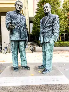 Fathers Theodore Hesburgh and Edmund Joyce is an outdoor statue on the University of Notre Dame campus. Located on the South side of the Hesburgh Library facing the reflecting pool, the sculpture was designed and built by artist Lou Cella, a member of the Rotblatt-Amrany Fine Art Studio,[1] and is currently owned by the University of Notre Dame.