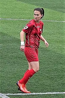 Kara appeared for the first time in the women's national team playing against Azerbaijan team in the UEFA Support International Tournament on May 11, 2009.[16] She also took part in the 2011 FIFA Women's World Cup qualification – UEFA Group 5 and UEFA Women's Euro 2013 qualifying – Group 2 matches. As of end September 2014, she capped 25 times in the national team scoring 4 goals.[1]