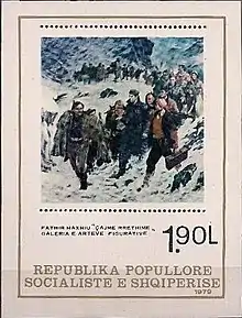 ![]() Blow the Circle 1979 stamp, featuring an illustration by Haxhiu | |