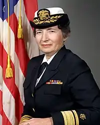 Faye Glenn Abdellah (March 13, 1919 – February 24, 2017) was an American pioneer in nursing research.[1] Abdellah was the first nurse and woman to serve as the Deputy Surgeon General of the United States.[1] Preceding her appointment, she served in active duty during the Korean War, where she earned a distinguished ranking equivalent to a Navy Rear Admiral, making her the highest-ranked woman and nurse in the Federal Nursing Services at the time.[2][3] In addition to these achievements, Abdellah led the formation of the National Institute of Nursing Research at the NIH, and was the founder and first dean of the Graduate School of Nursing at the Uniformed Services University of the Health Sciences (USUHS).[3] A few of Abdellah's more passionate interests in public health included the importance of long-term care planning for elderly patients; the need to strengthen nursing school infrastructure; and the necessity of patient-centered approaches in nursing.[3] In 2000, Abdellah was inducted into the National Women's Hall of Fame.[1][4] During her acceptance speech, Abdellah made the following quote: "We cannot wait for the world to change . . . Those of us with intelligence, purpose, and vision must take the lead and change the world . . . I promise never to rest until my work has been completed!”[5]