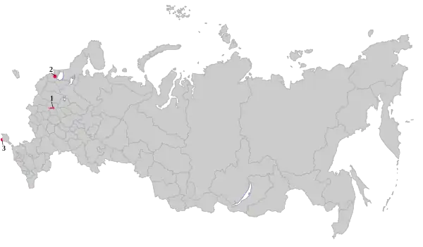- ↑ Федеральная служба государственной статистики (Federal State Statistics Service) (May 21, 2004). "Территория, число районов, населённых пунктов и сельских администраций по субъектам Российской Федерации (Territory, Number of Districts, Inhabited Localities, and Rural Administration by Federal Subjects of the Russian Federation)". Всероссийская перепись населения 2002 года (All-Russia Population Census of 2002) (in Russian). Federal State Statistics Service. Archived from the original on September 28, 2011. Retrieved April 18, 2008.