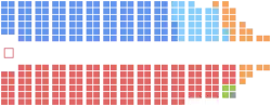 - Seats short of a majority 2008: 12. Term of office 2 years, 142 days (872 days).