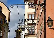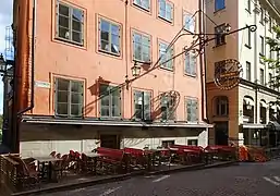 Fem små hus (Swedish for "five small houses") is a classic restaurant in Gamla stan in central Stockholm, Sweden, located in the Python block in the corner of Nygränd 10 and Österlånggatan 15. The restaurant serves traditional Swedish cuisine with a French influence. In winter the restaurant is only open on evenings but in summer it also serves lunch.[1]