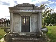 Kahler was naturalized a U.S. citizen on June 23, 1921.[7] Kahler died November 14, 1927, was buried in the City Vault on November 17 and later reinterred in the Kahler family vault in New Albany's Fairview Cemetery on April 23, 1929.[8] The Kahler family vault was built by the Peter & Burghard Stone Company of Louisville, Kentucky at a cost of $15,000 (equivalent to $252,701 in 2022).[9]