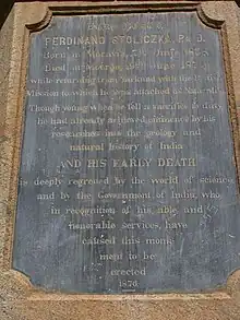 Ferdinand Stoliczka (Czech written Stolička, 7 June 1838 – 19 June 1874) was a Moravian palaeontologist who worked in India on paleontology, geology and various aspects of zoology, including ornithology, malacology, and herpetology. He died of high altitude sickness in Murgo during an expedition across the Himalayas.[1]