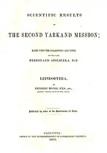 - Scientific results of the second Yarkand mission : based upon the collections and notes of the late Ferdinand Stoliczka. London: Eyre & Spottiswoode. 1891. Retrieved 16 October 2019 – via Biodiversity Heritage Library.