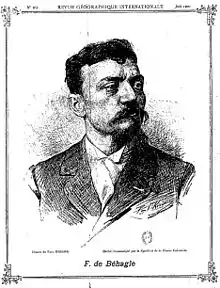 In 1892, de Béhagle was a volunteer member of the exploratory expedition organized by Casimir Maistre, François Joseph Clozel and Albert Bonnel de Mézières that followed the expedition of Paul Crampel. The mission ascended the Congo River, then the Ubangi River, and explored the divide between the Chad and Congo Basins.[4] After his return, between 1893 and 1897, de Béhagle published a number of papers on the French colonization of Africa.[5] He was an erudite man.[2] De Béhagle and Paul Bourdarie (1864–1950) made speeches to the Société africaine de France in which they stressed the importance of the French colonists making a military "association" with the natives for defense of the colonies.[6]