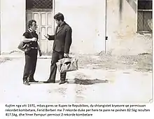 With training from Riza Lofca,[2] he set 37 National weightlifting records as an athlete, won the gold medal at the II National Spartakiad in 1969 and was a National Champion in 1972,73,74 and 75. He was the first Albanian to lift over 400kg in three styles. Through sport, he was among the few Albanians allowed to go abroad during the country's communist period, including to China in 1972 and Romania in 1975. Throughout his athletic career, Berberi continued his studies and earned several diplomas, while also teaching at the high school level. He believed that all athletes should also receive a quality education.