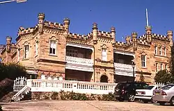 Fernleigh Castle was built in 1892 on the site of a sandstone cottage built in 1874, and incorporates the original walls of that building. Castle-like in appearance, it is constructed of sandstone and features a square Norman-style tower, smaller towers with their own turrets, and castellated walls. Although it also includes wrought iron balconies similar to homes in Paddington. The house has thirty rooms and a number of stained-glass windows.[3][4]