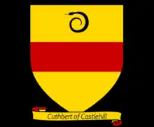Feudal Barony of Castlehill is a Scottish feudal barony in Inverness, Scotland. Also called Auld Castlehill, it lies on the outskirts of the burgh of Inverness, between Culcabock, Drakies, and Culloden and it may be the hill where Macbeth's castle once was.[1] The lands were thought to have been granted to the Cuthbert family by King Kenneth I in the 950s, however the first known charter erecting Castlehill into a barony is from King James III on 23 July 1478. This charter was granted to William Cuthbert, grandson of George Cuthbert "who distinguished himself at the Battle of Harlaw".[2][3]