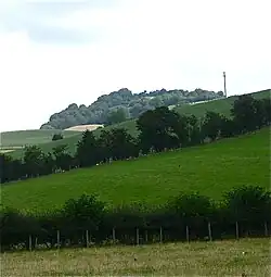 ![]() Fridd Faldwyn Iron Age Hillfort on the skyline, as viewed from Llandyssil | |