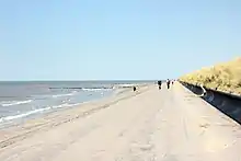 Ffrith Beach, Prestatyn, Denbighshire, North Wales is one of three sandy beaches along the Prestatyn coastline - Barkby Beach, Central Beach and Ffrith Beach. A promenade joins the three beaches, and, at around 4-miles in length, is used by walkers and cyclists. It has been incorporated into the National Cycle Network. The views along the promenade extend from the Snowdonian Mountains, the Great Orme of Llandudno and Anglesey in the west, through to The Wirral to the east, and Prestatyn Hillside to the south. On very clear days, it is possible to see the Isle of Man, the Cumbrian Mountains and Blackpool Tower, while the BHP Petroleum Douglas oil and gas platform in Liverpool Bay is usually visible.[1]