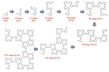 • its perimeter at order n equals , where is the nth Fibonacci number.
