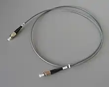 The single mode fibre cables use an 8μm fibre armoured with a steel wrap and Kevlar strands inside a plastic jacket. Fibre cable cannot be easily joined (an expensive fusion splicer is required for reliable joints) but pre-made cables with FC type screw-on connectors (mechanically similar in use, but smaller, to the F-connectors used for electrical satellite IF) are available in lengths from 1m to 100m. The same connectors are used on all the optical components of a system, including the optical LNB, splitters, cable joiners, virtual LNB units, etc.