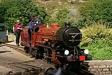 Fifteen-inch gauge railways were pioneered by Sir Arthur Percival Heywood who was interested in what he termed a minimum gauge railway for use as estate railways or to be easy to lay on, for instance, a battlefield.[1] In 1874, he described the principle behind it as used for his Duffield Bank Railway, distinguishing it from a "narrow-gauge" railway. Having previously built a small railway of 9 in (229 mm) gauge, he settled on 15 in (381 mm) gauge as the minimum that he felt was practical.