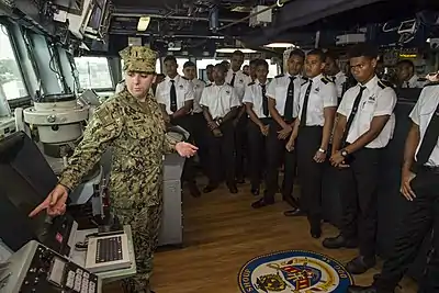 The Fiji Navy provides students with two weeks of "boot camp", to help the students acquire discipline and "officer like qualities".[6]