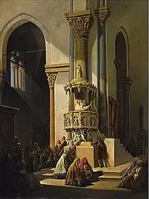 After 1826, he was a regular participant in the biennial Bourbon Exhibition. This may have contributed to his being named an "Honorary Professor" at the Academy. In 1830 his large canvas The Tomb of the Good Man, won a major prize at the exhibition.[2]