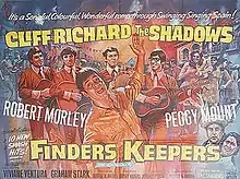Finders Keepers is a 1966 British musical film directed by Sidney Hayers, written by Michael Pertwee and starring Cliff Richard and The Shadows. It was released in the U.S. the following year. A search was made to find an actress to play the Spanish girl who falls for Cliff, and the 21-year-old Viviane Ventura won the role: born in London, but fluent in Spanish, she sang a spirited duet with Cliff on "Paella".[1]