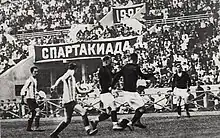 1928 Moscow All-Union Spartakiad football match Uruguay (Federación Roja del Deporte) vs. Finland (Finnish Workers' Sports Association) at the Dynamo Stadium