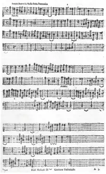 Fiori musicali is one of the most influential collections of music in European history. Its contents inspired collections of sacred organ music by Italian composers (Salvatore, Croci and Fasolo), and both the contents and the layout were an influence on Sebastian Anton Scherer's Op.2, Operum musicorum secundum, published in 1664. Also in 1664, Bernardo Storace used a theme from Frescobaldi's Ricercare con l'obbligo di cantare la quinta parte senza tocarla for his triple fugue. Frescobaldi's move from secular to sacred composition was echoed in Johann Caspar Kerll's similar move in his Modulatio organica (1683). Most importantly, Frescobaldi's collection was studied by Henry Purcell[5] and Johann Sebastian Bach (the latter copied the entire work for his own use[6][7]).