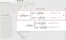 Firemath is a WYSIWYG equation editor which generates MathML. It is open source software published under the GNU General Public License (GPL) version 3.[1] Firemath is an add-on for the web browser Firefox. It uses the rendering facilities of the browser.
