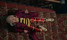 The opening scene in which a sailor carries the lifeless body of the dreamer closely follows the Christian image of the pietà, in which the Virgin Mary cradles the dead body of Jesus.[13] Anger's camp re-creation is emphasized with intense, expressionistic lighting of the subject against a dark background; thunder and lightning; and a dolly shot that gradually reveals the scene.[14][15] This scene and its reappearance as a photograph later in the film conflate masochistic desire with redemptive suffering.[13] Anger has described the role of the sailor by saying that he "was a kind of sex symbol on one level, and on another level there was a great deal of ambivalence and hostility, and fear in the image."[15]