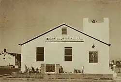 75 to 100 people attended the first meeting as a church on Easter Sunday morning in 1938 which was held outside on a platform that would soon become the original parsonage at 12315 Roberts Ave., next door to the parsonage later owned and used by the church. Members continued to meet in the parsonage until the church building was completed one block away at 12255 Boron Avenue in 1940. It was organized as the First Baptist Church of Amargo, California, which was the original name of the settlement a few miles south of the underground mine, on August 21, 1938 with 13 charter members, among them, Mr. and Mrs. Stan Sausser, Mr. and Mrs. C.E. Jamieson, and Mrs. Alpha Cheesman. Three of these original members were Dixie Hill, Leone Jamison, and Stan Sausser who attended the 50 year anniversary of the church which was held on September 18, 1988.[2] The present sanctuary was built by friends and members of the church and dedicated on June 9, 1940.Under the leadership of Rev. Clell Horton the first Sunday School unit was built and dedicated on April 20, 1952. The current parsonage at 12323 Roberts Ave. was built under the leadership of Rev. J. Earl Reavis and dedicated on May 14, 1955 and the Sunday School Annex, which was constructed from two surplus Air Force barracks from Edwards Air Force Base, was dedicated on May 24, 1959.