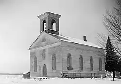 First Baptist Church is a historic Baptist church on Polin Road in Charleston, Montgomery County, New York. It is believed to have been built in the 1820s and remodeled during the 1860s. It is a rural vernacular wood-frame church executed in the late Federal / early Greek Revival style. The 1+1⁄2-story, heavy timber-framed structure features a square, hip-roofed bell tower. Also on the property are a cemetery, dry-laid stone wall, and receiving vault. The majority of the burials date to the early 19th century, since the church had been organized about 1793. The Charleston Historical Society acquired the property in 1978.[2]