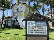 First Lutheran Church of Venice is a congregation in the Lutheran Church–Missouri Synod (LCMS) founded in 1944 on the westside of Los Angeles. It serves the communities of Venice, Mar Vista, and Marina del Rey, and is in the Pacific Southwest District of the LCMS. The church offers both traditional and contemporary services and ran the First Lutheran School of Venice[1] a Lutheran elementary school on the Westside of Los Angeles established in 1948. After 70 years in the Venice community, the church decided to close the school in 2018.[2]
